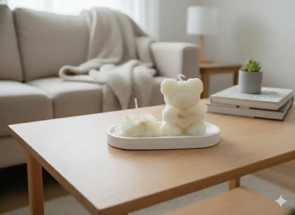 Bandeja, vela rosas en oso, vela flor peonia Material bandeja concreto Velas en cera de soya aromatica