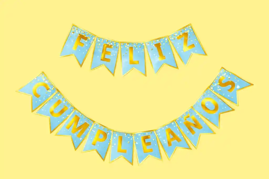 Hermoso banderín decorativo con la frase “FELIZ CUMPLEAÑOS”, diseñado en color azul celeste con bordes dorados y letras doradas metalizadas, ideal para crear una ambientación elegante, alegre y llamativa en cualquier celebración. Incluye detalles de puntos dorados y blancos tipo confeti, que le dan un toque festivo y moderno. Cada pieza viene una por una, lista para armar y colgar fácilmente en paredes, mesas de dulces, fondos de fotos o entradas. Características: Frase: FELIZ CUMPLEAÑOS Color base: Azul celeste Bordes: Dorado Letras: Dorado metalizado Diseño con puntos dorados y blancos Piezas individuales Incluye cuerda para colgar Reutilizable y liviano Ideal para: Cumpleaños infantiles, juveniles o de adultos, fiestas temáticas, sesiones de fotos y decoraciones en casa o eventos. Importante: El producto incluye únicamente el banderín con sus piezas y cuerda. Los demás elementos que aparecen en las imágenes son solo para ambientación.