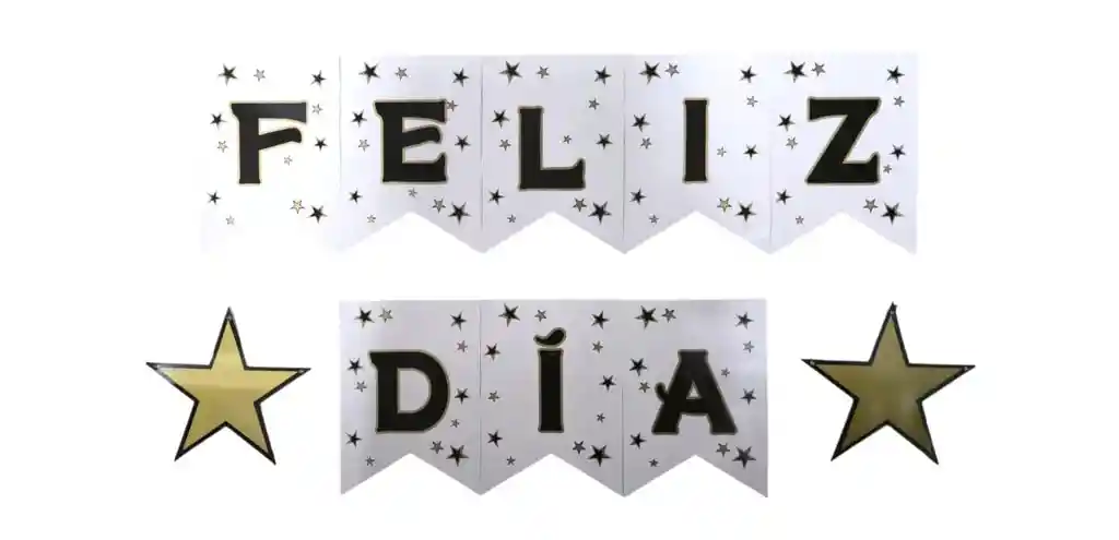 Banderin en papel Feliz Dia con 2 Estrellas , para Celebrar, Para Decorar, Para Cumpleaños Para San Valentín, Día De la Mujer, Día del Hombre, Día De La Madre, Amor y Amistad, Aniversario, Día Del Maestro
