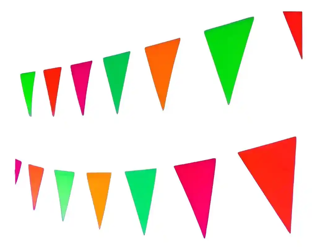 Banderines de tela Neon coloridos de 7 metros aproximado. Estos banderines le dan vida a tus decoraciones