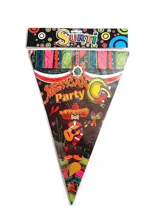 🚩 Banderines elaborados en cartón estampado de motivo Fiesta Mexicana, para fiestas temáticas mexicanas, día de los muertos, cumpleaños, carnavales, entre otras. 📏 Cada banderín mide 32 cm de largo x 22 cm de ancho El paquete viene x 6 banderines