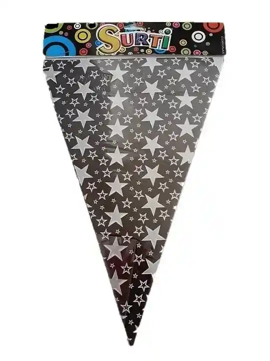 BANDERINES NEGRO ESTRELLAS PLATEADAS CADA BANDERIN MIDE 33 X 23