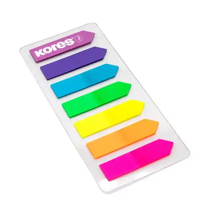 BANDERITAS ADHESIVAS KORES, 5 COLORES, 25 UNIDADES CADA COLOR, IDEALES PARA MARCAR, SEÑALAR Y ORGANIZAR DOCUMENTOS.