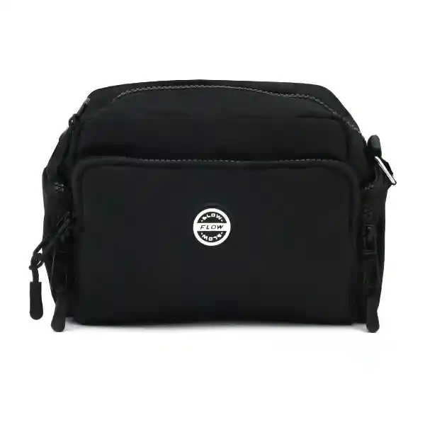Bandolera rectangular en Nylon con compartimento en la parte superior con cierre de cremallera, un compartimento rectangular de gran capacidad que ocupa la mayor parte del frente, ideal para artículos de uso frecuente,Incluye pequeñas aberturas con cremallera en los costados para organizar objetos mínimos como llaves o monedas, En el centro del bolsillo frontal destaca un logotipo circular distintivo de "SLOW FLOW" en blanco y negro, Elaborado en Nylon con forro interno en tela y herrajes metalicos, garantía de 3 meses directamente con el vendedor en cierres, herrajes y costuras