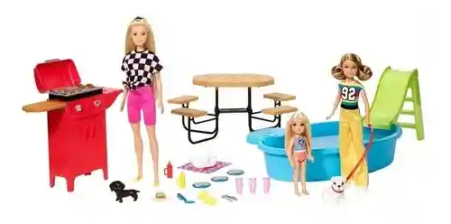 Barbie celebra la diversidad con estas muñecas únicas que fomentan la creación de historias del mundo real y estimulan los sueños sin límites. Con una gran variedad de tonos de piel, colores de ojos y de cabello, tipos de cuerpo y estilos, las muñecas Barbie Fashionistas™ están diseñadas para reflejar el mundo que las niñas ven hoy en día, ya que les ofrecen un sinfín de formas para crear historias y expresar su estilo. Esta muñeca inspira un sinfín de historias con una silla de ruedas manual que cuenta con ruedas móviles y un freno que funciona de verdad. Además, incluye una rampa para que la muñeca Barbie pueda entrar y salir fácilmente de la casa de los sueños Barbie (se vende por separado y está sujeta a disponibilidad). Incluye muñeca Barbie Fashionistas™ vestida con prendas a la moda, accesorios, una silla de ruedas y una rampa. La muñeca no se puede mantener de pie ni avanzar por sí sola. Los zapatos planos se ajustan a las muñecas con tobillos articulados o pies planos. Los colores y las decoraciones pueden variar. Haz una barbacoa en el patio trasero con Barbie, sus hermanas y sus adorables cachorritos. Este set de juego incluye todo lo quel Barbie, Stacie™ y Chelsea™ necesitan para divertirse bajo el sol: una mesa de pícnic, una parrilla y una piscina con tobogán para crear el escenario perfecto durante un día de verano. Llena la piscina con agua y haz que las hermanas se deslicen por el tobogán para darse un gran chapuzón. Las niñas pueden hacer que sus muñecas se sequen con las coloridas toallas y luego comenzar la barbacoa. Cuenta con muchas características geniales, como una tapa que se abre y se cierra, repisas laterales y dos ganchos para colgar los accesorios de cocina. Cuando la comida esté lista, prepara la mesa de pícnic rosa con accesorios de fácil enganche, como vasos para beber, una hamburguesa y hot dogs de “papel”. Reúnanse, ¡hay un asiento para cada hermana y uno extra para sus perritos mascota! Los accesorios adicionales incluyen un guante para horno, tenazas y espátula para la parrilla, dos envases de condimentos y una linda canasta de pícnic, todos cuentan con manijas para que las muñecas puedan sujetarlos por sí solas. Barbie, Stacie™ y Chelsea™ están vestidas para divertirse en el patio con prendas coloridas y accesorios. Con tantas piezas para inventar historias, la imaginación de las niñas podrá crear infinitas aventuras al aire libre. Es muy divertido explorar el patio e ir más allá con Barbie y sus hermanas, porque cuando una niña juega con Barbie, puede ser lo que quiera ser. Las muñecas no pueden mantenerse de pie por sí solas. Los colores y las decoraciones pueden variar. Peso del paquete: 1.181 kg Medidas del paquete: 57x38x7 cm Modelo: Picnic Entre Hermanas Edad mínima sugerida: 3 años Incluye: 3 muñecas y accesorios ADVERTENCIA: Contiene o puede generar partes pequeñas que pueden causar asfixia. Referencia de juguete: GJB70