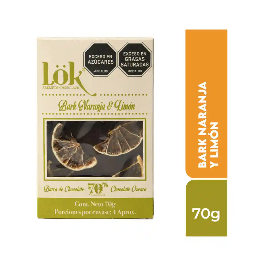 Bark De Chocolate 70% Con Naranja Y Limón 70g