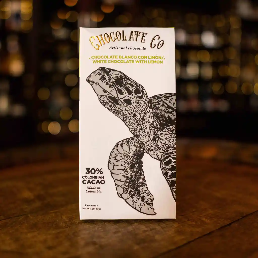 Barra artesanal de chocolate blanco con limón. Una mezcla inusual, pero deliciosa. Fabricado con cacao de los Montes de María.