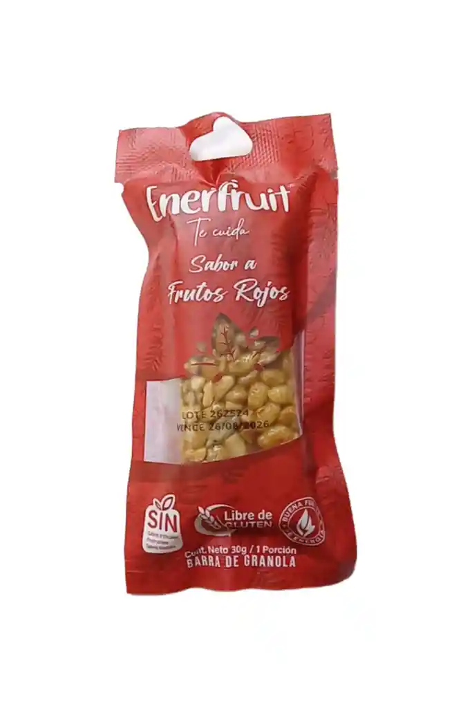 Barra de cereal con frutos rojos, sin gluten y rica en fibra. Ideal para un snack saludable y lleno de energía.