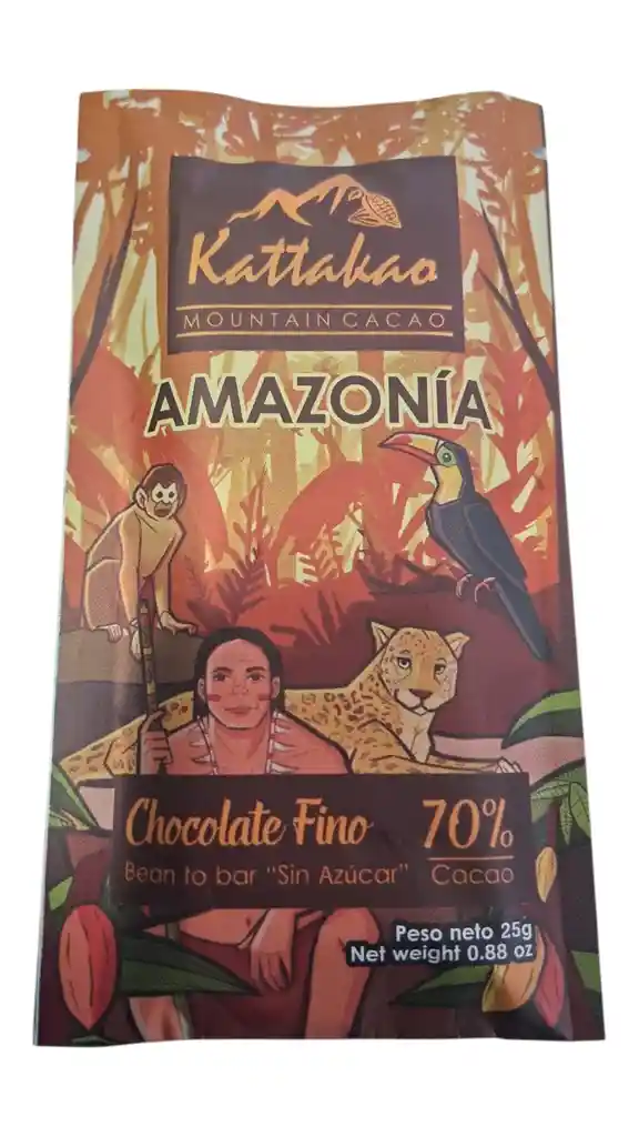 BARRA DE CHOCOLATE 25G AMAZONIA CACAO 70% SIN AZUCAR KATTAKAO