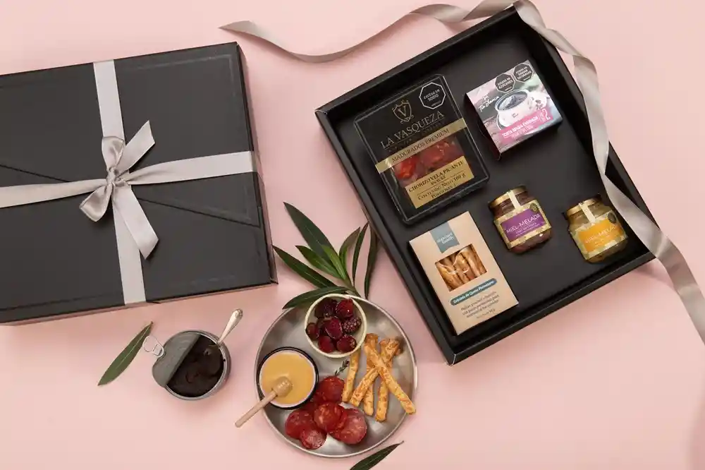 Grissinis con queso parmesano (90g aprox), miel melada de mora (130 ml), miel melada de maracuyá (130 ml), sna...Ver más