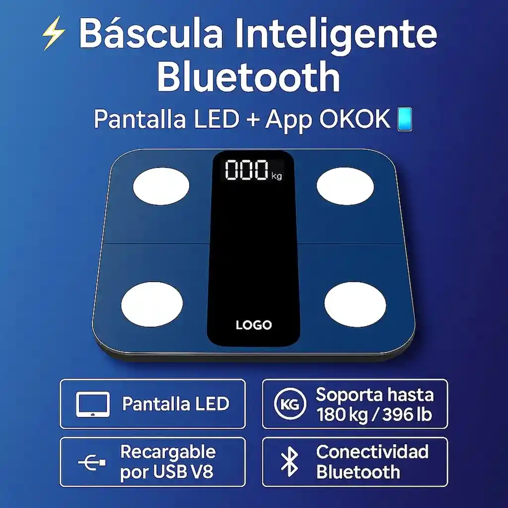 ¡Controla tu peso y tu progreso de forma fácil y precisa! 🏋️♂️ Esta báscula personal inteligente combina diseño moderno, materiales resistentes y tecnología avanzada para brindarte mediciones confiables. ✨ Características clave: 📱 Pantalla LED clara y elegante. ⚖️ Soporta hasta 180 kg / 396 lb. 🔋 Recargable por USB V8 (sin pilas). 📲 Conectividad Bluetooth + App OKOK para seguimiento en tu smartphone. 🛡️ Material premium: ABS + vidrio templado. Lleva tu control de peso al siguiente nivel con datos precisos y al instante. 💪