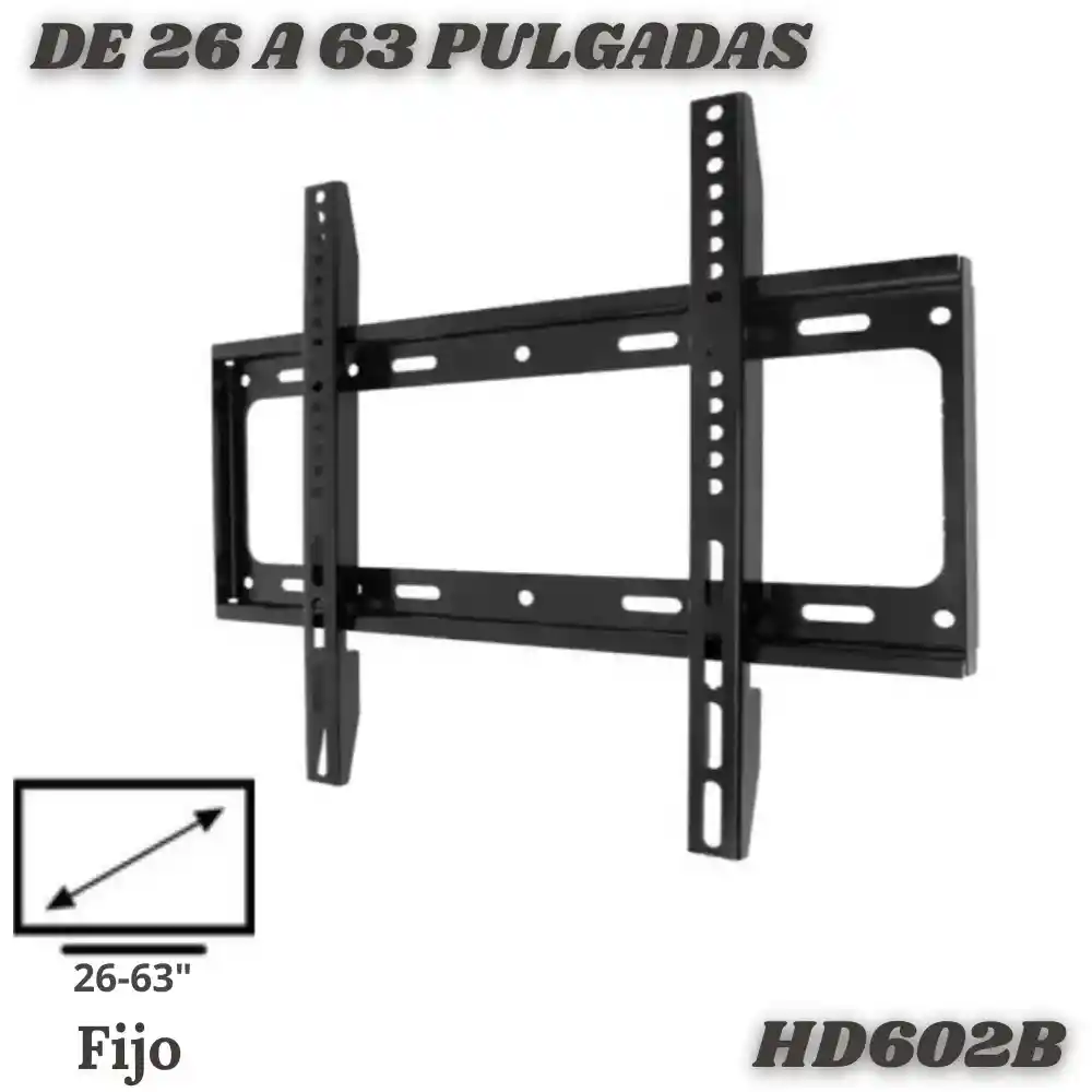 Base Fija Soporte Para Televisor 26 A 63 Pulgadas HD602B Con este genial soporte puedes darle un toque mas bonito y elegante a tu tv. *CARACTERISTICAS: -Color: Negro -Material: SPHC con revestimiento terminado -Apariencia: adoptar estructura de acero de alta resistencia que combina con un diseño de estampado simplificado. -Tamaño de TV compatible: 26 pulgadas - 63 pulgadas -Capacidad de carga: 110 lbs-50 kg -Ángulo de inclinación: 0 grados -La longitud del perfil de la pared: 25mm -Ajustado fácilmente e instalado rápidamente -Este producto cumple con los 200 × 200mm, 200 × 400mm, 300 × 300mm, 400 × 400mm de paso estándar VESA. Adecuado para Familia, entretenimiento, lugares públicos y lugares comerciales como sala de estar, KTV, bares, aeropuertos, estaciones de ferrocarril, estaciones de autobuses, centros comerciales, tiendas de espera, salón, grandes salas de conferencias, aulas, vestíbulo y restaurantes.