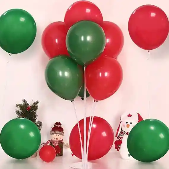 Base Armada de 7 Globos Biodegradable Sempertex inflados de látex en colores Rojo Y Verde. Tamaño: 1 Metro de alto aprox Navidad Dia De Velitas