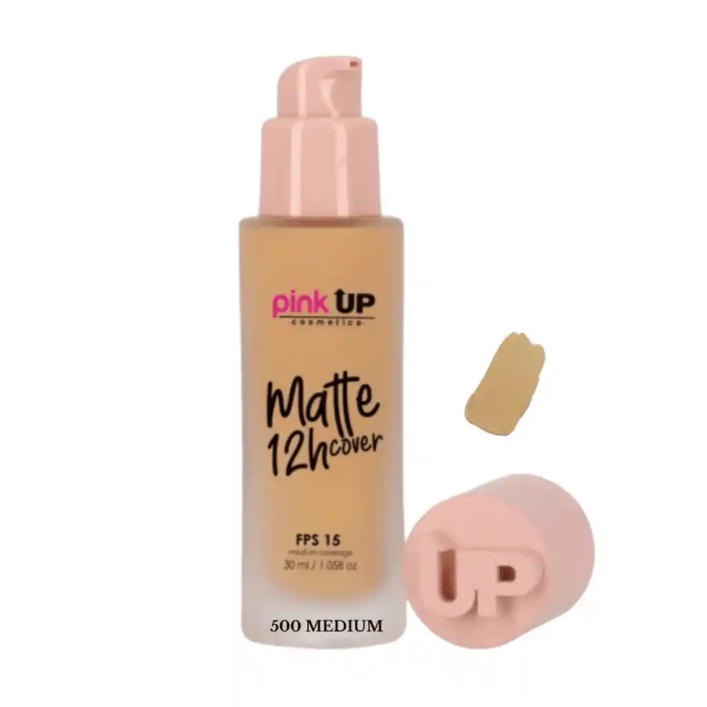 Base Matte Cover 12h Pink Up - Tono 500 Medium Base de maquillaje líquida de acabado mate, su textura es suave y confortable, brinda a la piel una cobertura media de larga duración. Está formulada especialmente para pieles mixtas a grasas que necesitan controlar el brillo antiestético del rostro. Ingredientes: Agua, glicerina, magnesio y pigmentos minerales.