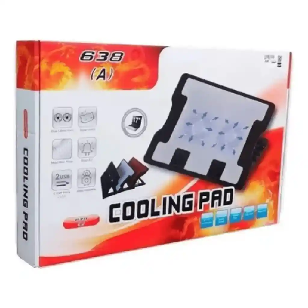 Base Refrigerante para portátiles desde 9" hasta 17" 2 Ventiladores Silencioso 2 Puertos USB 5 posiciones diferentes Led USB