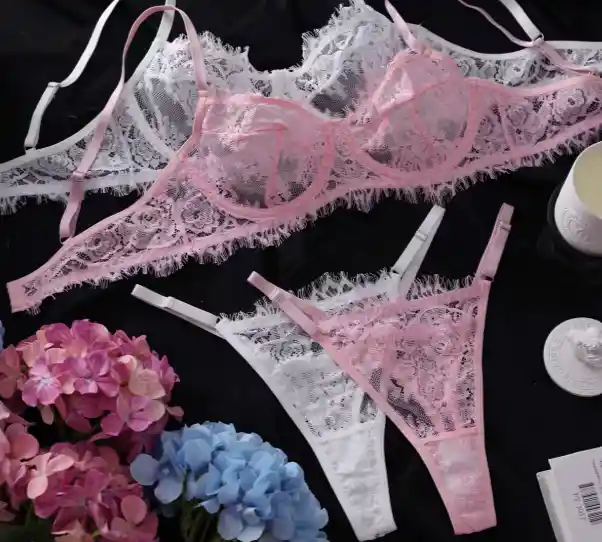 set de encaje rosa ajustable talla S