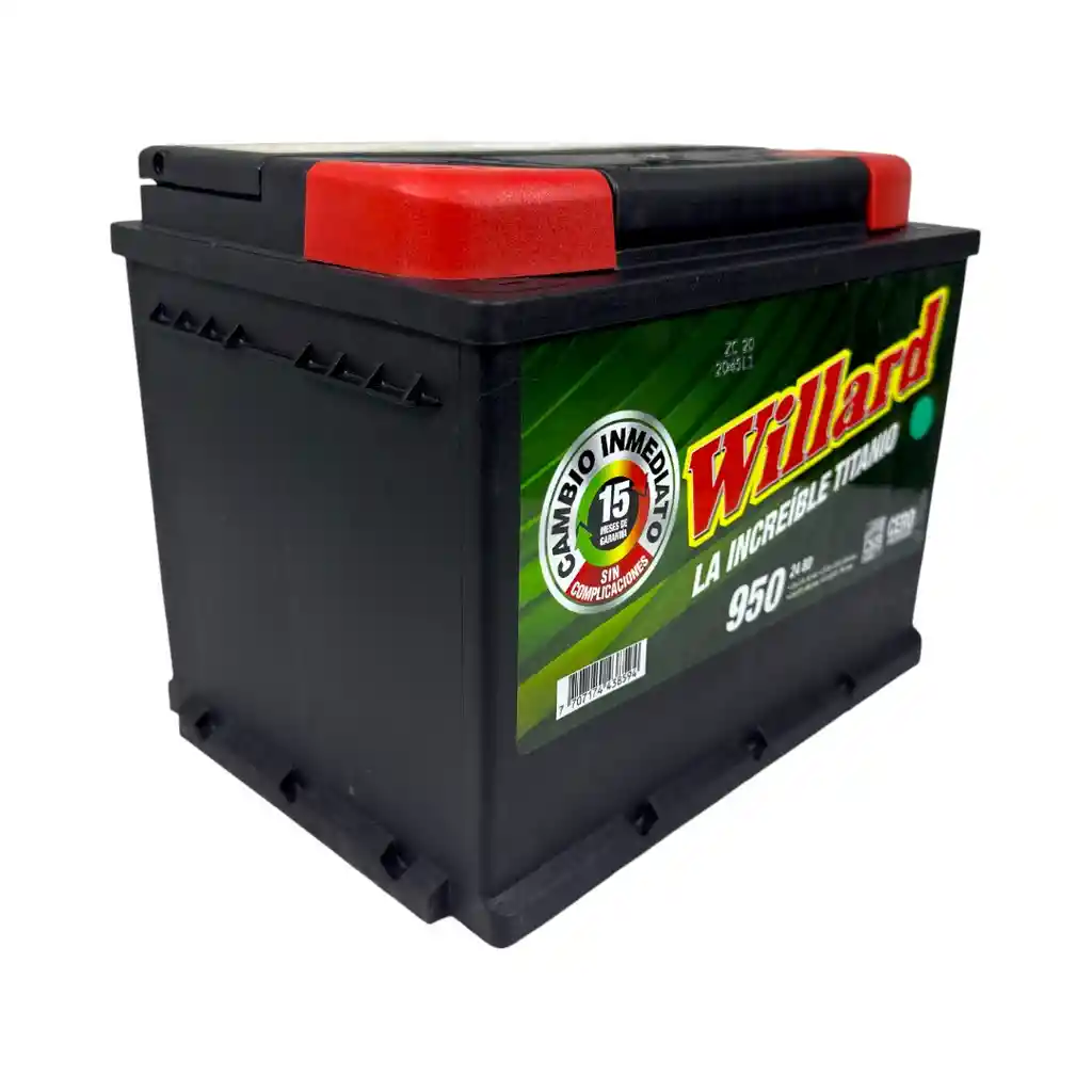 Batería automotriz WILLARD de 12V con 950 amperios. Producto nuevo, sellado y listo para su uso.