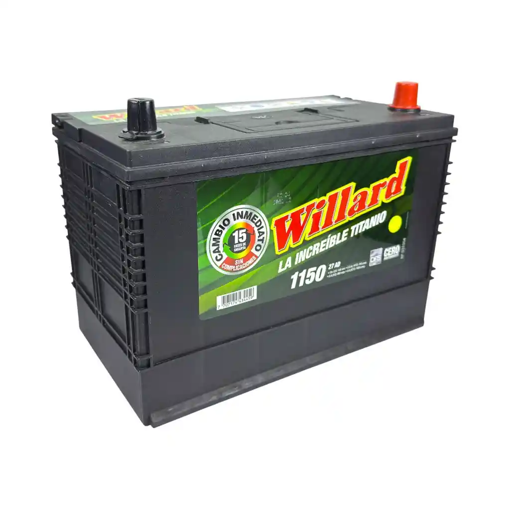 Batería automotriz WILLARD de 12V con 1150 amperios. Producto nuevo, sellado y listo para su uso.