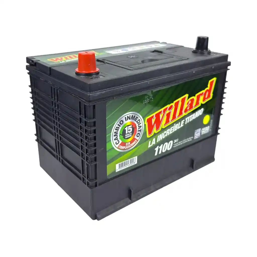 Batería automotriz WILLARD de 12V con 1100 amperios. Producto nuevo, sellado y listo para su uso.