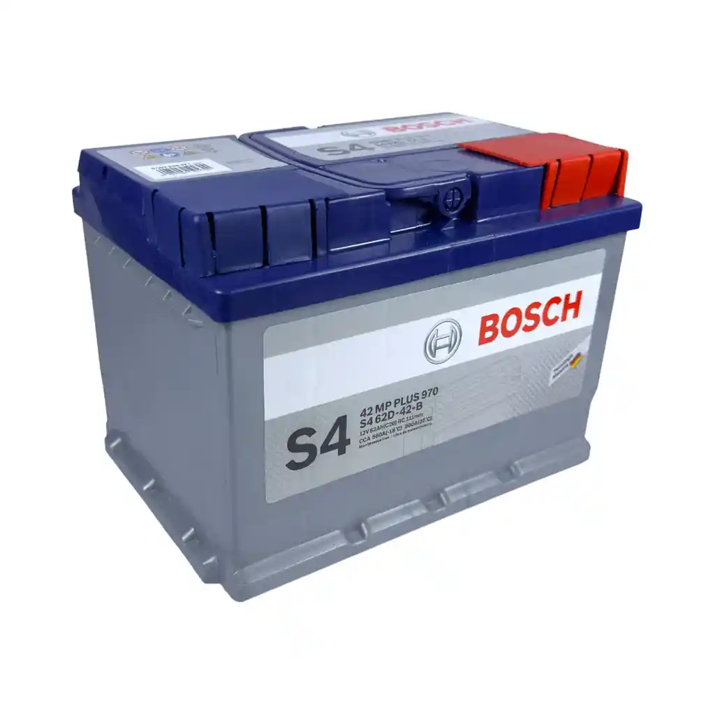 Batería automotriz BOSCH de 12V con 970 amperios. Producto nuevo, sellado y listo para su uso.