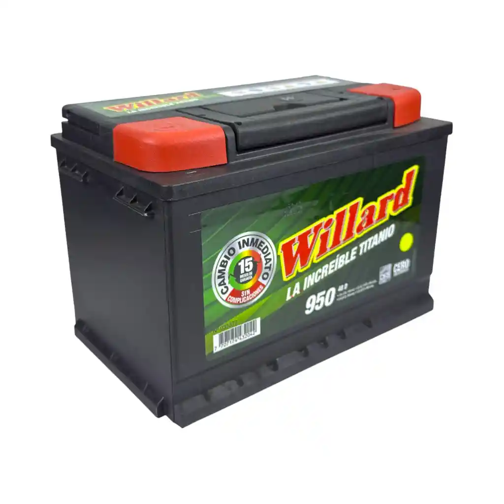 Batería automotriz WILLARD de 12V con 950 amperios. Producto nuevo, sellado y listo para su uso.