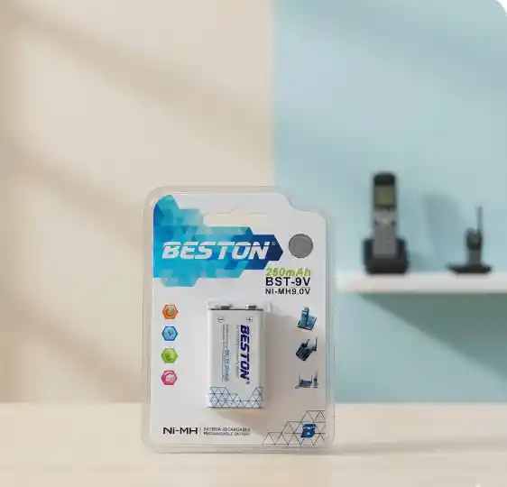 No las mezcle al momento de utilizar baterías Ni-Cd y Ni-MH con diferentes capacidades y tamaños Esta batería es ideal para alimentar dispositivos electrónicos de alta gama que requieren una batería 9V, como detectores de humo, juguetes electrónicos, instrumentos musicales y más. -Batería de 9 voltios y capacidad de 250mAh, de alta tecnología, protección ambiental y recargables. -Paquete de 1 unidad. PRECAUCIÓN En caso de peligro: no desmonte las baterías en un lugar de alta temperatura o en el fuego. No cargue las baterías Ni-MH junto con las baterías secas. Al momento de utilizar baterías Ni-Cd y Ni-MH no las mezcle con diferentes capacidades y tamaños. Si no se van a usar durante mucho tiempo, cargue completamente las baterías y póngalas en un lugar fresco y seco. Cargue completamente las baterías al usarlas por primera vez. Para una mayor duración, cargue las baterías con cargadores Beston. CALIDAD Beston, uno de los grandes importadores de dispositivos eléctricos y también de baterías, presenta ahora baterías mejoradas Ni-MH, que son del más alto nivel mundial en capacidad nominal.