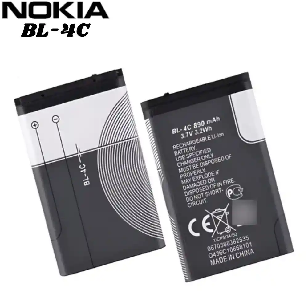 Bateria Nokia Recargable 890 mAh Bl-4C Dale a tu teléfono la potencia que se merece con esta Batería Nokia BL-4C. Recupera la independencia y la confianza de un celular que nunca te deja tirado. - DURACIÓN REAL: Los 890 mAh de esta batería rinden mucho más que antes. - COMPATIBILIDAD PERFECTA: Encaja y funciona a la perfección, sin falsos contactos ni problemas de reconocimiento. ¡IMPORTANTE! Verifica la Compatibilidad Esta batería es el modelo BL-4C. Para asegurar que te sirva, retira la tapa de tu dispositivo y compara el modelo de tu batería vieja. Debe decir "BL-4C". Ficha Técnica: - Marca: Nokia - Modelo: BL-4C - Capacidad: 890 mAh - Voltaje: 3.7V - Tipo de Batería: Li-Ion (Iones de Litio)