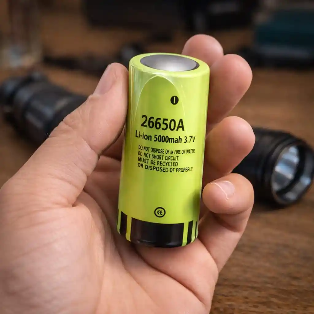 Batería recargable tipo 26650 de ion de litio (Li-ion) con alta capacidad de 5000mAh, ideal para dispositivos que requieren gran rendimiento y larga duración de energía. Gracias a su voltaje nominal de 3.7V, ofrece un suministro estable de energía, siendo perfecta para equipos de alto consumo como linternas LED potentes, bicicletas eléctricas y sistemas solares portátiles. Su diseño robusto permite un uso confiable en diferentes aplicaciones electrónicas compatibles con este tipo de batería. Características * Tipo de batería: 26650 Li-ion * Capacidad: 5000 mAh * Voltaje nominal: 3.7V * Dimensiones: 26 mm de diámetro × 65 mm de longitud * Mayor duración y rendimiento energético * Batería recargable Usos recomendados * Linternas LED de alta potencia * Bicicletas eléctricas * Sistemas solares fuera de la red * Dispositivos electrónicos compatibles con baterías 26650 Contenido del paquete * 1 Batería recargable 26650 Li-ion 5000mAh