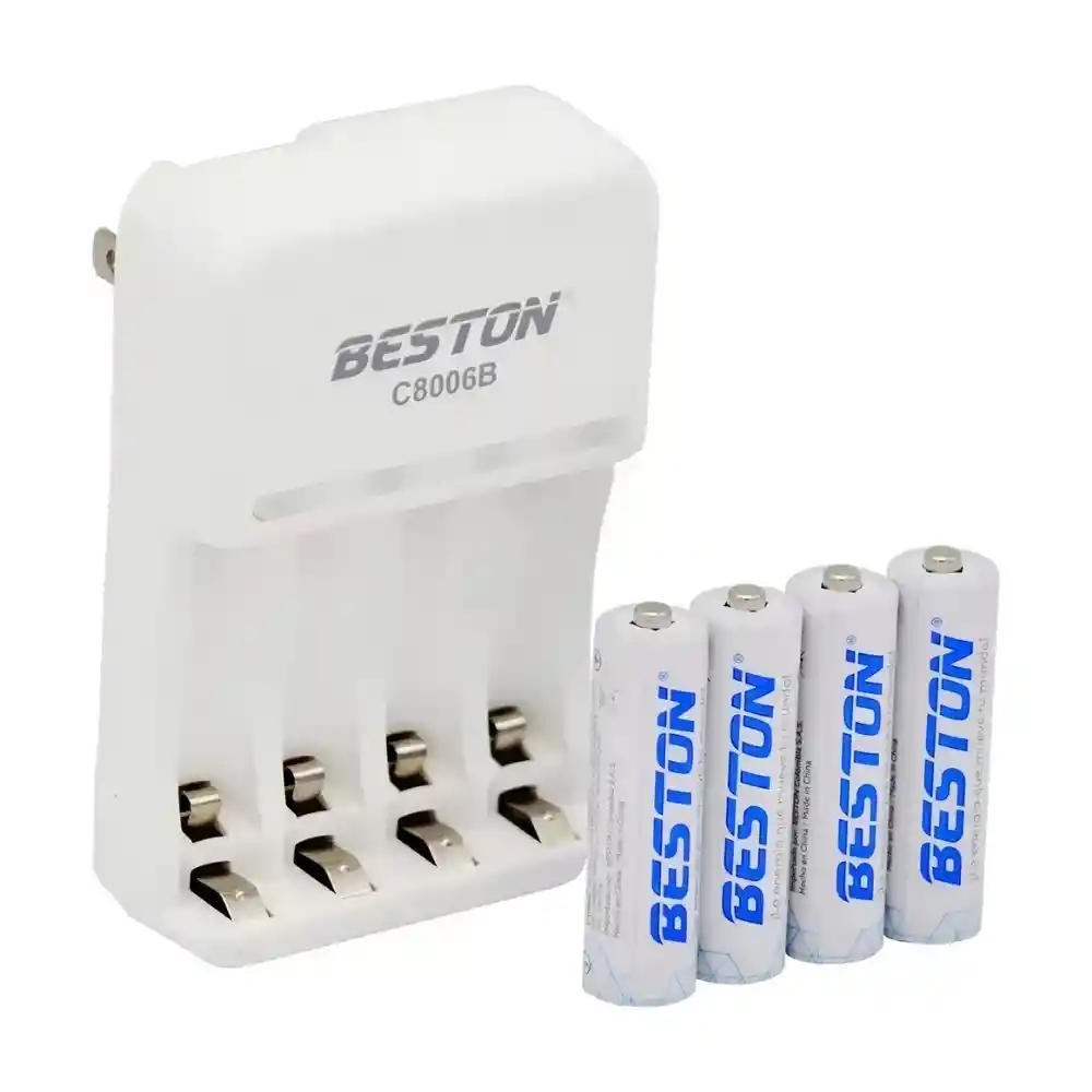 El cargador C8006B es un dispositivo versátil diseñado para cargar hasta 4 baterías recargables AA o AAA, incluyendo 4 baterías AA de 1500mAh. Con protección de temperatura y sobreintensidad de corriente, su microprocesador identifica baterías no recargables o defectuosas, garantizando seguridad durante el uso. Se recomienda descargar completamente las baterías antes del primer uso, y el tiempo de carga es de 12 horas inicialmente y 8 horas a partir de la segunda carga, asegurando un rendimiento óptimo. Ideal para mantener los dispositivos siempre listos, es seguro para su uso a temperaturas entre 0 °C y 40 °C bajo supervisión adulta. //// Contenido de la caja: 1 Cargador - 4 Baterías AA Recargables //// Ficha Técnica: El LED indica el proceso de carga y cambia de color una vez que las baterías están completamente cargadas. Peso: 67g Tamaño: 99.5 x 66 x 26 mm. Entrada: AC 100-240V 50/60Hz 10W(Max). Salida: DC 1.2V 200mA (AA) – DC 1.2V 100mA (AAA).