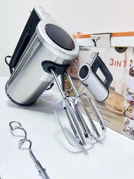 batidora de mano eléctrica Sokany 3 en 1 Incluye batidores de alambre y ganchos para amasar. •Cuenta con múltiples •Velocidades ajustables