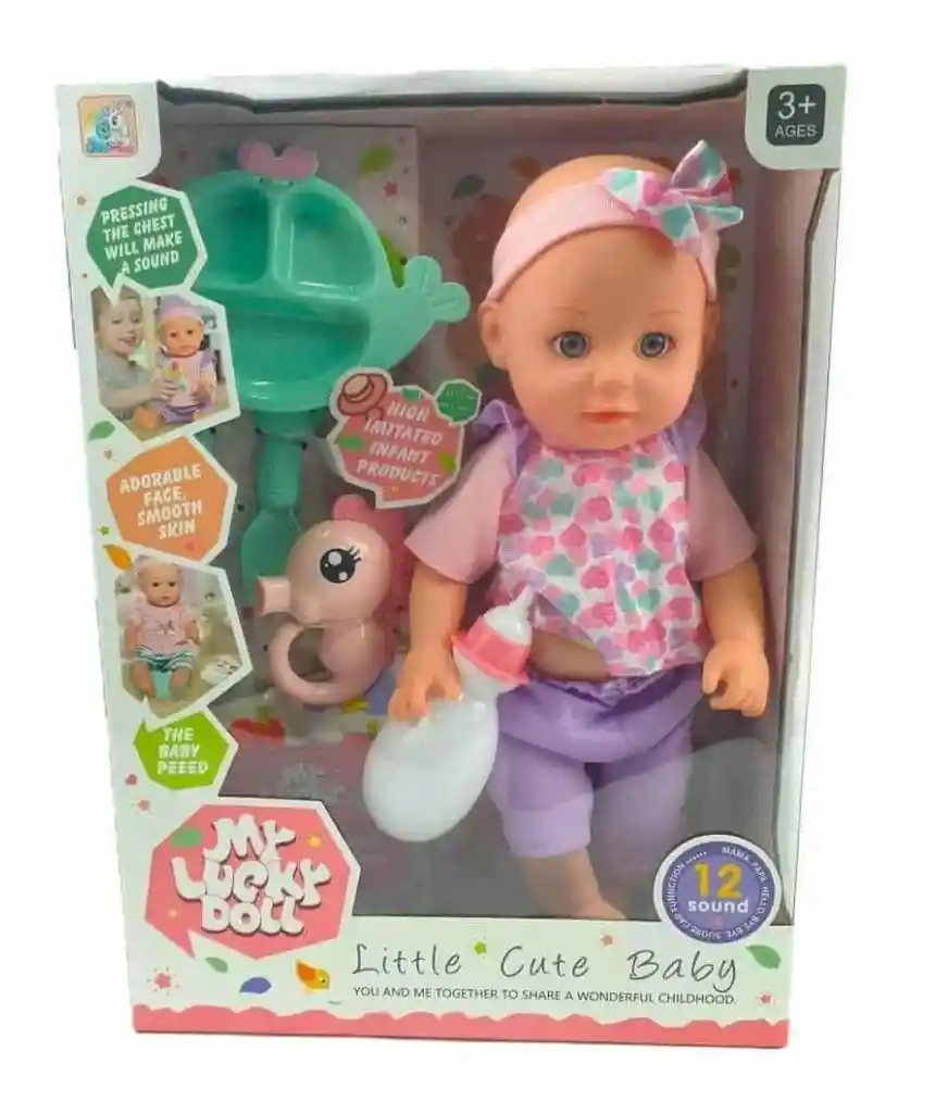 Muñeca Bebé Interactiva Set de Lujo ¡La compañera ideal para los más pequeños! Este encantador bebé de juguete está diseñado para brindar horas de juego y ternura. Con un conjunto colorido y detalles realistas, esta muñeca es perfecta para niños y niñas mayores de 3 años. Incluye múltiples accesorios y funciones para un juego más interactivo: ¡Incluye sonidos y melodías! Incluye: Muñeca y accesorios