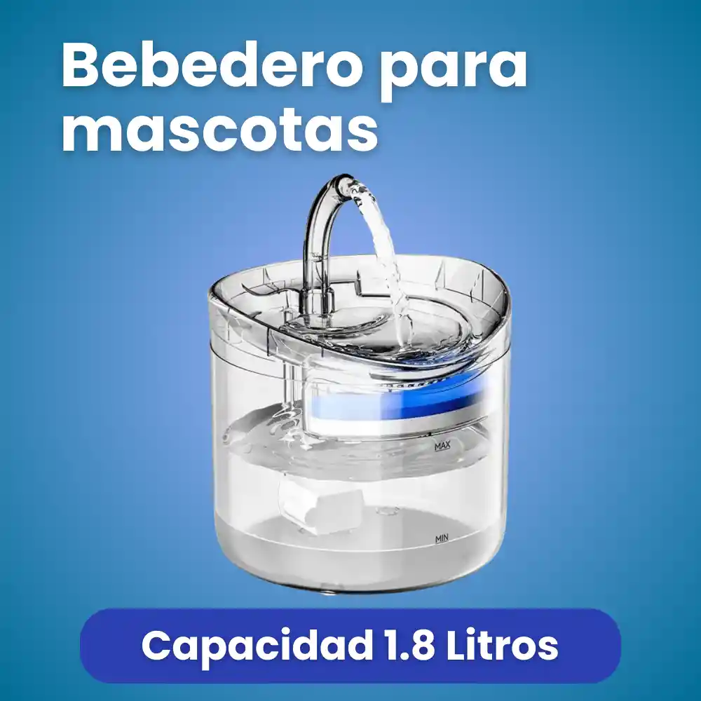 Este bebedero automático está diseñado para mantener el agua de tu mascota en movimiento constante, ayudando a que se conserve más fresca y atractiva para perros y gatos. Su diseño transparente permite ver fácilmente el nivel de agua, evitando que funcione en seco y facilitando el control diario. Funciona mediante conexión USB de 5 V, con una bomba de bajo consumo y funcionamiento silencioso, ideal para uso continuo en casa. ⭐ Características principales ✦ Capacidad de 1.8 litros, adecuada para uso diario. ✦ Flujo de agua continuo que incentiva a la mascota a beber. ✦ Bomba silenciosa y de bajo consumo energético. ✦ Sistema de filtración triple: - Esponja filtrante - Resina de intercambio iónico - Carbón activado ✦ Diseño totalmente transparente para fácil monitoreo. ✦ Alimentación USB 5V (puede conectarse a cargador, power bank o puerto USB). Importante: el sistema mejora la calidad del agua, pero no la esteriliza ni la convierte en agua potable si la fuente original no lo es. 📦 ¿Qué incluye la caja? 1 bebedero automático modelo WF060 1 bomba de agua USB 1 sensor de movimiento 2 filtros Manual de usuario ⚙️ Especificaciones técnicas ✦ Modelo: WF060 ✦ Capacidad: 1.8 L ✦ Material: Plástico PC transparente ✦ Alimentación: 5V / 100 mA (USB) ✦ Dimensiones: 17.2 × 17.2 × 16.5 cm ✦ Sistema de filtrado: esponja + resina + carbón activado ✦ Uso recomendado: interior 🐶 Ideal para ✦ Gatos y perros pequeños o medianos ✦ Mascotas que prefieren agua en movimiento ✦ Hogares que buscan una opción práctica y silenciosa ✦ Dueños que desean controlar visualmente el nivel del agua