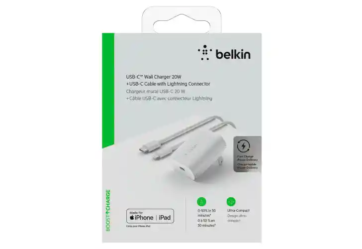 El Belkin BOOST↑CHARGE™ USB-C® Wall Charger 20W, WCA006 viene con una fuente de alimentación programable (PPS) para permitir la carga rápida de los teléfonos inteligentes iPhone®, iPad®, Samsung Galaxy® y Google™. Con su amplia compatibilidad y características planas a la pared, este cargador ofrece la solución de carga rápida PD de mejor valor para los consumidores. Para obtener más información sobre este producto
