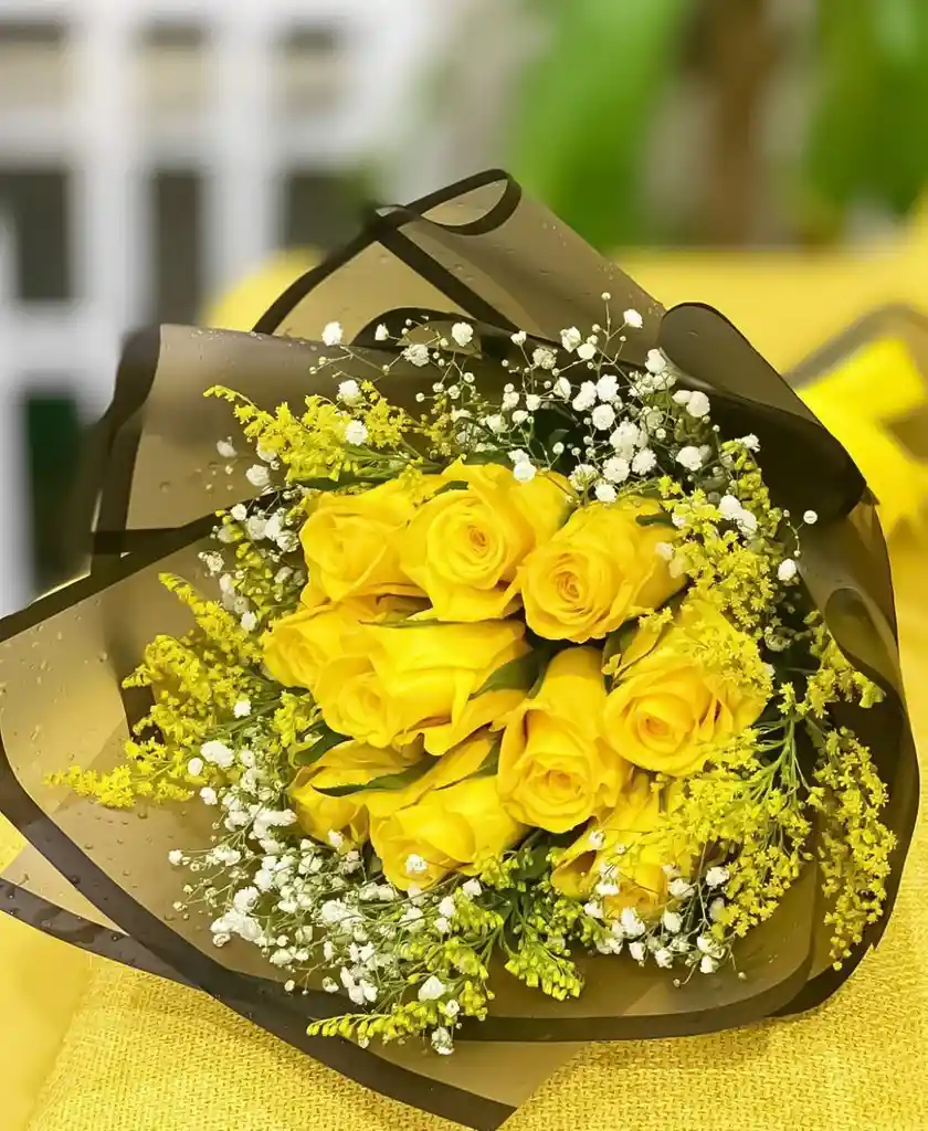 Ramo de 10 rosas amarillas en papel coreano