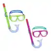 Conjunto de careta y esnórquel diseñado principalmente para niños y adolescentes. Estos kits suelen estar disponibles en combinaciones de colores vibrantes como verde/azul y fucsia/turquesa. Mercado Libre Colombia Mercado Libre Colombia +2 Detalles del Producto Lentes: Están fabricados con policarbonato estilo aviador, lo que proporciona resistencia y una visión clara bajo el agua. Ajuste: La máscara incluye una tira de sujeción ajustable para asegurar un ajuste cómodo y firme al rostro, evitando la entrada de agua. Esnórquel: Cuenta con una boquilla diseñada para ser cómoda durante el uso prolongado y un clip para sujetarlo fácilmente a la máscara. Protección: Muchos de estos modelos incluyen protección UV en los cristales para mayor seguridad durante el uso en exteriores.