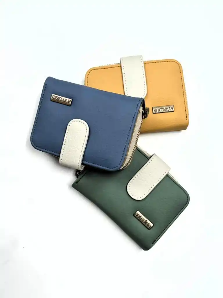 Billetera compacta, elaborada en cuero vegano de alta resistencia. Su diseño práctico incluye cierre metálico y broche de seguridad para mantener todo en orden. Ideal para llevar tarjetas, billetes y monedas de forma organizada. Un accesorio versátil que combina estilo, funcionalidad y conciencia sostenible.
