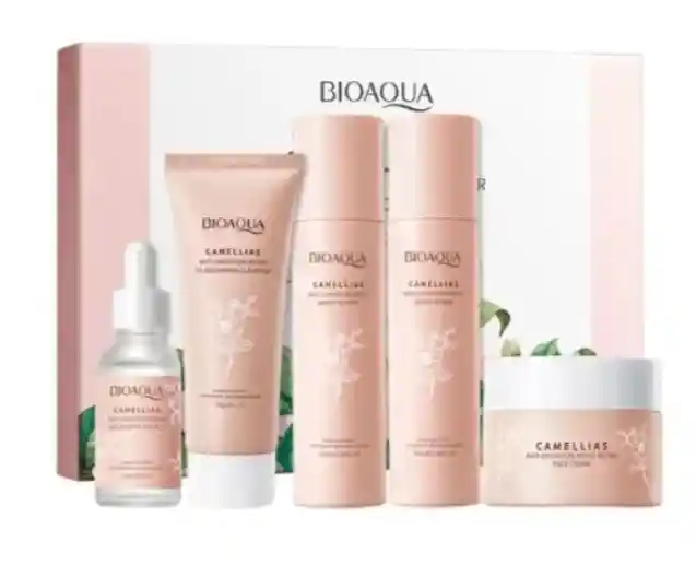 Bioaqua Set de Camelias Antioxidante x 5 Si tu piel se ve cansada , sin vida , y quieres darle un aspecto saludable y luminoso , este kit es para ti : El Kit de Extracto de Flor de Camelia es Anti-Oxidación, Reparación, Hidratante, Antiarrugas, Blanqueador, Reafirmante, Nutritivo, limpiador de poros, Brinda Iluminación, Limpieza de manchas, Antiedad y es Antinflamatorio. La Camelia es rica en vitamina C, que tiene un efecto contra las arrugas, Hidrata la piel, la hace flexible y suave después de la aplicación. Productos que incluye el kit: 1. Limpiador Facial (80 gr): El limpiador facial de camelia proporciona una limpieza suave pero efectiva, eliminando impurezas, exceso de grasa y residuos de maquillaje, mientras deja la piel suave, fresca y revitalizada. 2. Loción Reparadora de Camelia (100ml): Esta loción está diseñada para reparar y calmar la piel, especialmente después de la limpieza o exposición a factores ambientales estresantes. El extracto de camelia ayuda a restaurar el equilibrio natural de la piel y a mejorar su elasticidad. 3. Tónico Reparador (100ml): El tónico reparador complementa la rutina de limpieza facial al equilibrar el pH de la piel y prepararla para recibir los beneficios de los productos posteriores. Su fórmula suave y refrescante ayuda a tonificar y revitalizar la piel. 4. Serum (30 ml): Este serum está enriquecido con extracto de camelia, que ayuda a hidratar la piel en profundidad, reducir la apariencia de líneas finas y arrugas, y promover una tez más radiante y juvenil. 5. Crema Facial (50g): La crema facial de camelia completa la rutina de cuidado facial, proporcionando una hidratación intensa y duradera. Ayuda a fortalecer la barrera cutánea, protegiendo la piel de los daños ambientales y promoviendo una apariencia saludable y luminosa. La garantía de nuestros productos es de 30 días por defectos de fabrica, no aplica mal uso.