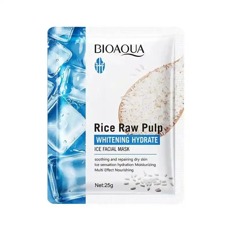♡ MASCARILLA VELO FACIAL PULPA ARROZ ♡ Dale a tu piel un boost de frescura y luminosidad con esta mascarilla hecha a base de pulpa cruda de arroz, ideal para hidratar profundamente, nutrir y mejorar la apariencia del tono de la piel. Su fórmula tipo mascarilla de hielo ayuda a desinflamar, refrescar y aportar un brillo natural instantáneo. Contenido neto: 25g por sachet. ✦ Incluye: 12x Sachets. Importante: En caso de irritación o reacción desfavorable, suspenda su uso y consulte a su médico.