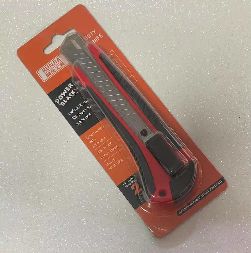 ¡Corta con la fuerza de un profesional! 🛠️🔥 Este bisturí de marca RUNJIA está diseñado para quienes necesitan durabilidad y potencia. Es perfecto para cortar cartón grueso, vinilos, plásticos y materiales de oficina con total seguridad. ¿Por qué es superior? Cuchillas Power Black: Fabricadas en acero SK5, son un 30% más afiladas que las convencionales y duran hasta 2 veces más. Mango Ergonómico: Su diseño "Impact Handle" con agarre antideslizante reduce la fatiga en la mano. Auto Lock Seguro: Sistema de bloqueo automático para que la cuchilla no se mueva mientras trabajas. 📍 ¡Agrégalo a tu pedido de Rappi o escríbenos por WhatsApp! 📲315 388 0960