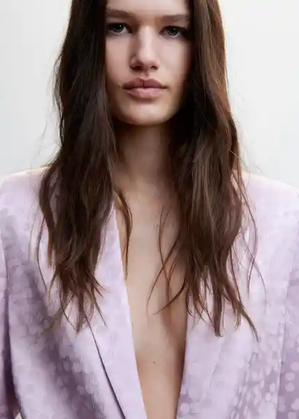 Cierre de Botón en la Parte Delantera Cuello Pico Con Solapa Diseño Estándar Diseño Recto Disponible Plus Dos Bolsillos de Ribete Laterales Estampado Topos Forro Interior Manga Larga Tejido Fluido Tejido Satinado Total Look - 47095856_68.