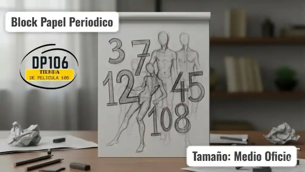 "Block de papel periódico tamaño medio oficio, ideal para bocetos rápidos, estudios anatómicos y prácticas de dibujo con lápiz, carboncillo o tiza. Contiene hojas de papel ligero y de textura ligeramente rugosa, perfecto para trazos sueltos y expresivos."