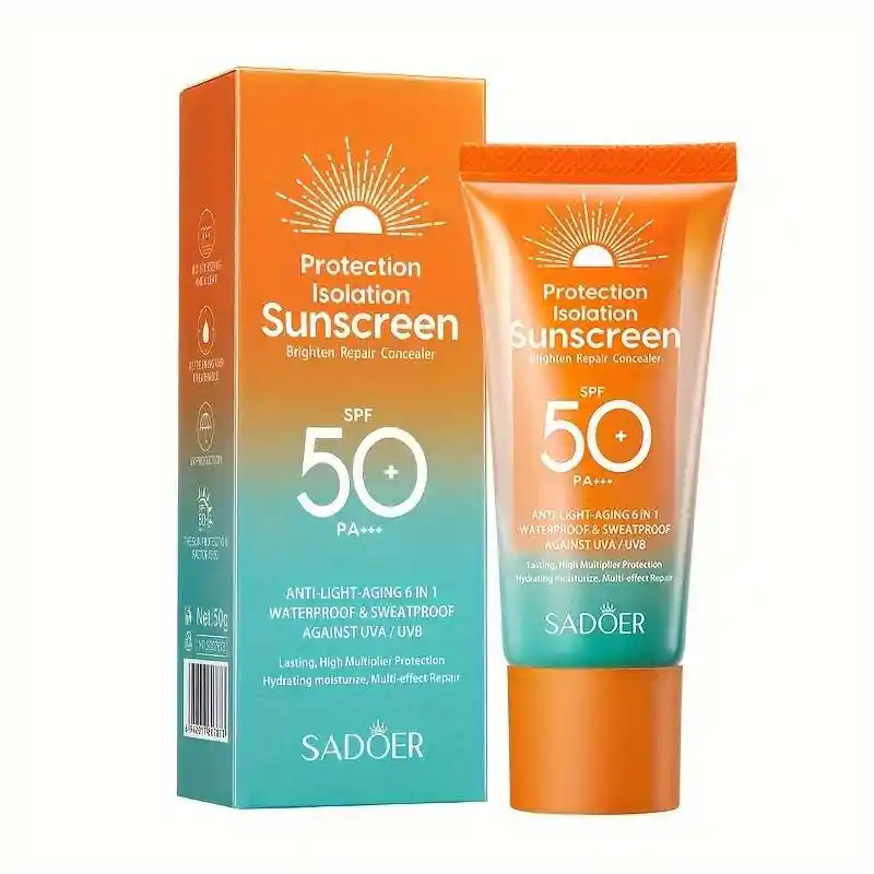 Novedoso bloqueador solar que además incluye un gel reparador, hidratante y anti edad. Bloqueador solar en loción con factor de protección 50 SPF el cual en su empaque tiene dos salidas de producto, una de bloqueador en crema el cual se absorbe fácilmente y la segunda con un gel reparador y anti edad. Ahora puedes cuidar tu piel de los rayos del sol y al mismo tiempo cuidar de ella, manteniéndola hidratada durante todo el día. Este bloqueador es de una textura suave y no deja rastro sobre la piel, resistente al agua y al sudor, se recomienda utilizarlo 10 minutos antes de la exposición. Contenido neto 50 gr