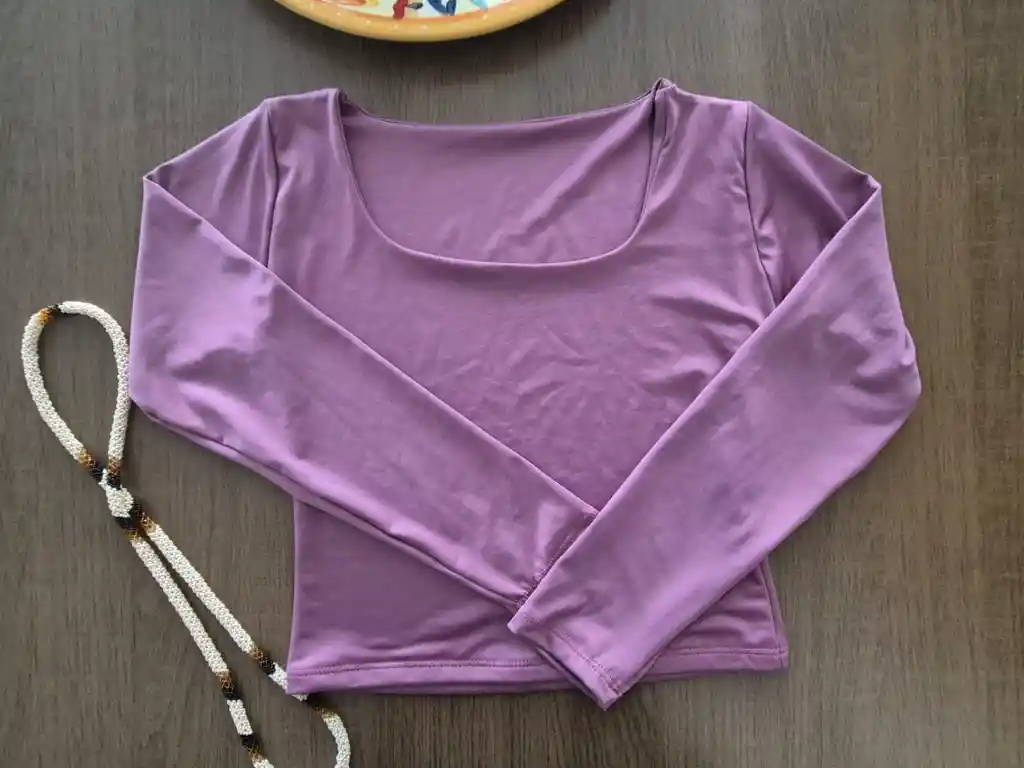 Blusa manga larga, cuello cuadrado, talla única, color mora.