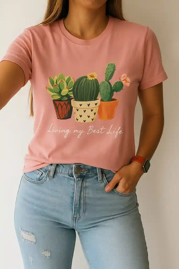 Hermosa Blusa de Algodon Licrado (94% Algodon y 6% Spandex con estampado en tecnica DTF con tematica de plantas) Talla L