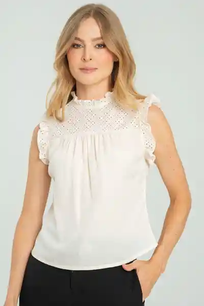 En Tejido Plano Fondo Entero y Ojalillo Manga Sisa Con Bolero Escote Redondo Con Bolero Almilla en Ojalillo Abertura Tipo Lágrima Con Botón en Posterior Silueta Semi Ajustada.