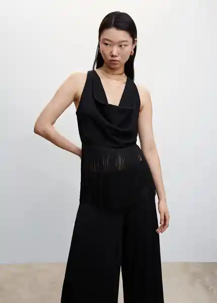 Cierre de Cremallera en la Parte Posterior Colección Fiesta y Ceremonia Cuello Drapeado Diseño Crop Diseño Entallado Tejido Fluido Terminación de Flecos Tirantes Anchos - 47067139_99.
