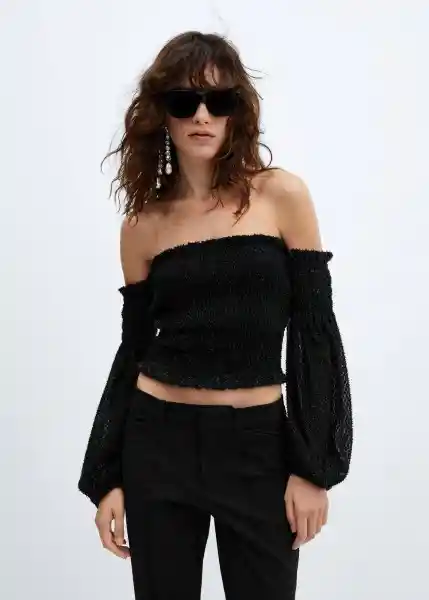 Colección Fiesta y Ceremonia Detalles de Lúrex Diseño Crop Diseño Entallado Hombros Descubiertos Manga Abullon...Ver más