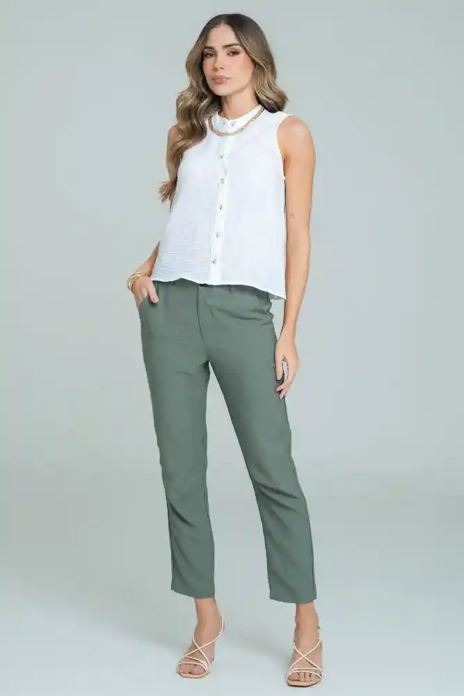 Camisa en tejido plano fondo entero, cuello nerú con perilla completa de botones 24L, almilla en posterior, manga sisa, silueta semi ajustada.