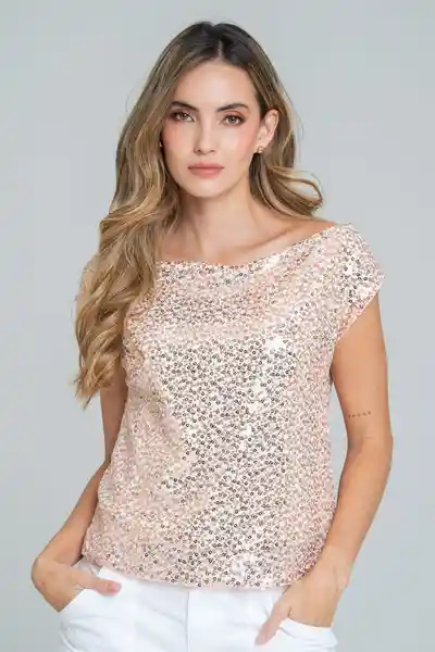 En Lentejuela Forrada Escote Barco Manga Rodada Silueta Amplia.