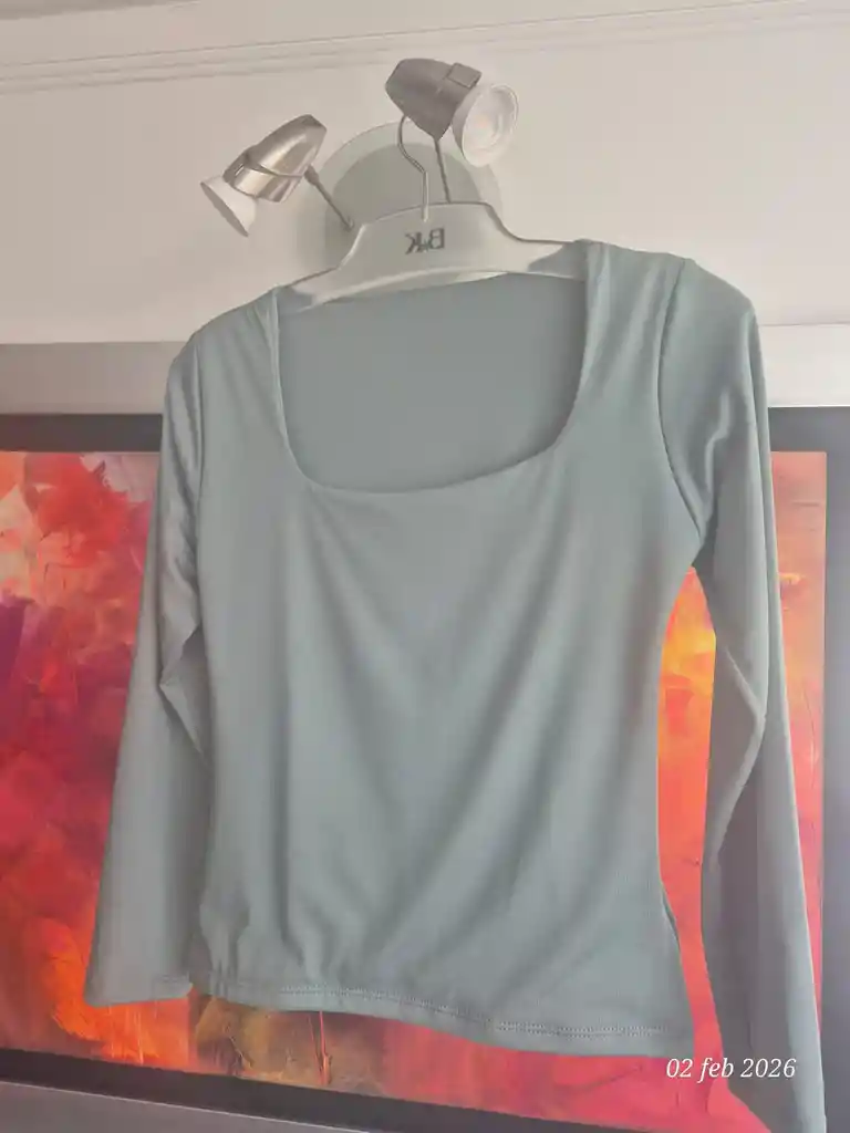 Blusa manga larga cuello cuadrado color Verde Menta